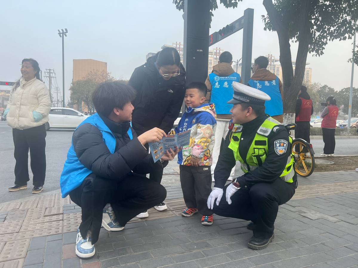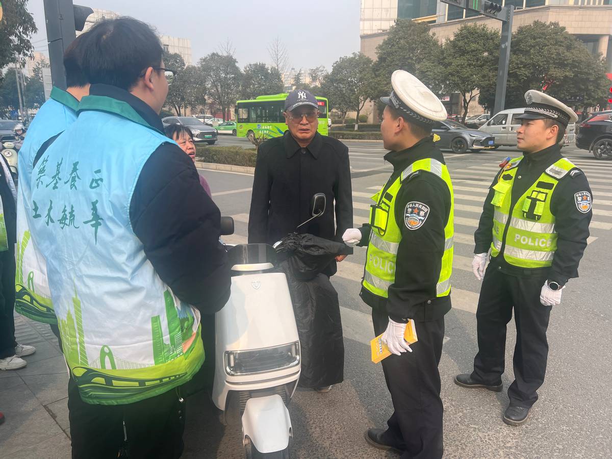 活动中,宣传民警与社区工作人员以及志愿者在人民路十字共同携手向过往行人发放交通安全宣传资料,提醒行人注意观察交通信号灯、有序通过斑马线,并向群众解答疑问,同时,劝导不遵守交通指示灯的行人遵守交通法规,积极倡导“车让人、人守规”“一盔一带、安全常在”的文明理念,共同营造“文明交通、携手共创”良好氛围。