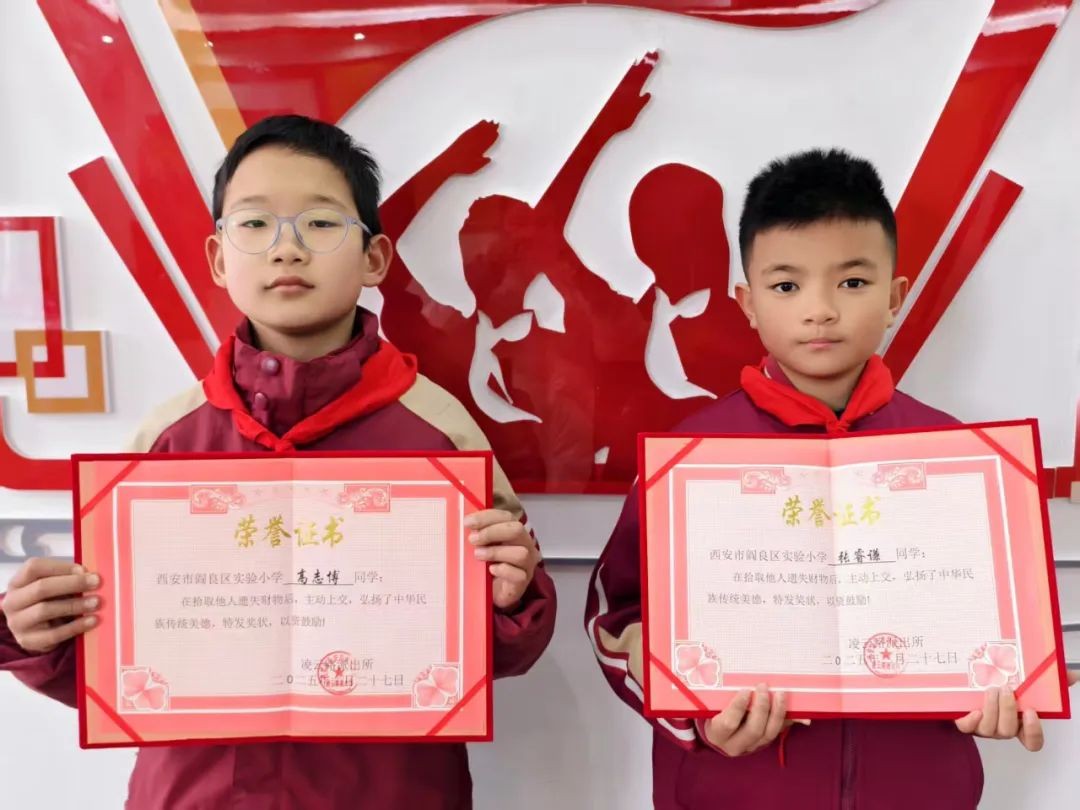 原来,2月25日中午,阎良区实验小学五年级六班张睿谦、五年级二班高志博两名学生在阎良区人民中路附近,捡到一个袋子,里面有1万元现金,捡到现金后,两名学生主动交给托管班老师,之后联系警方,找到失主,归还现金。