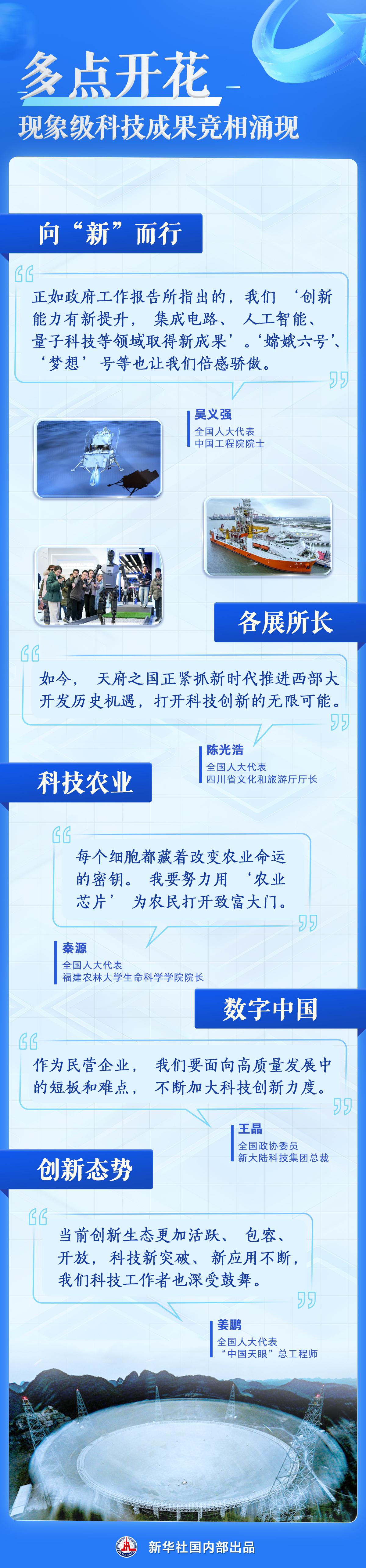 “新”潮澎湃、乘势而上。代表委员们信心满怀:把握创新机遇、勇攀科技高峰,以科技创新引领新质生产力发展,必将谱写中国式现代化新篇章。