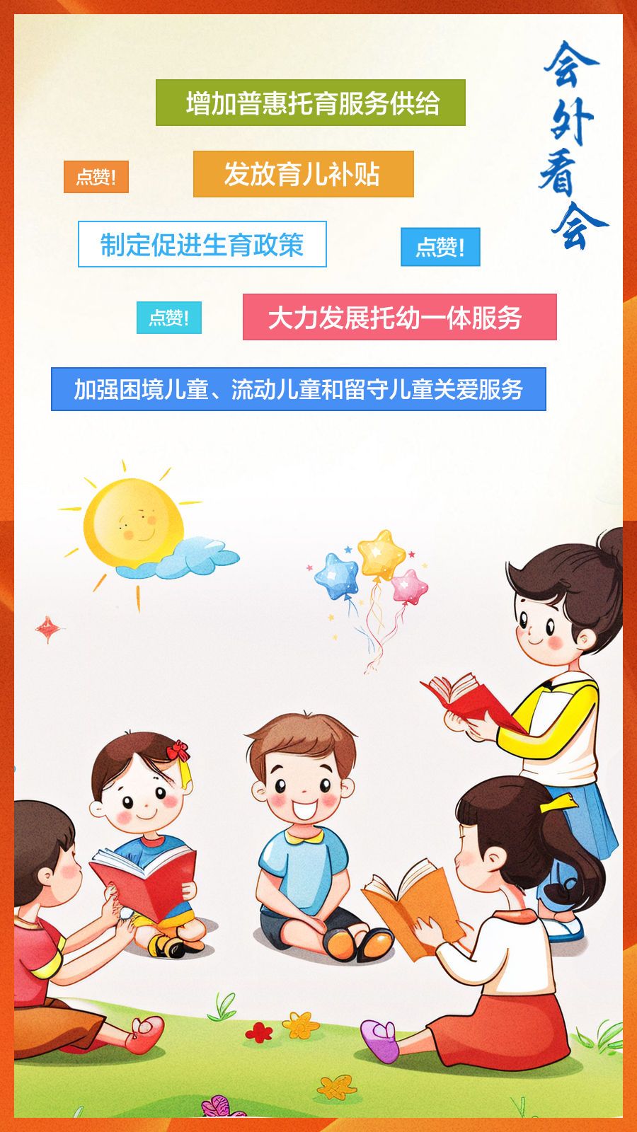 新华社北京3月8日电 孩子是祖国的花朵。制定促进生育政策,发放育儿补贴,大力发展托幼一体服务,增加普惠托育服务供给……今年政府工作报告中关注孩子的这些提法,会外群众怎么看?