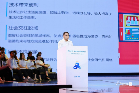 西北农林科技大学副教授李卓带来了前沿思考。这位长期研究社会治理与数字技术的学者指出,在数据成为新生产要素的时代,网络文明建设需要把握“秩序与活力的平衡”。他形象地将教师比喻为“精神育种人”,鼓励教师们首先要拥抱网络,用新的教学手段帮助学生们将学术研究变成一种有趣的沉浸式体验。