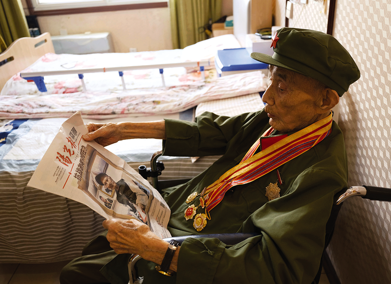 抗战老兵周观连回忆起战火纷飞的军旅岁月时感慨万分。